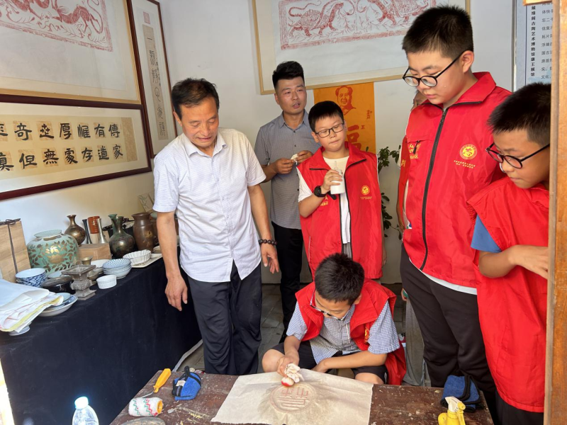 活动过程中,还开展了“拓纸”“手工馒头”“碾辣子”等实践活动,很多小志愿者从未见过,开心的挨个尝试,天气炎热也挡不住孩子们的好奇心,认真的动手体验。