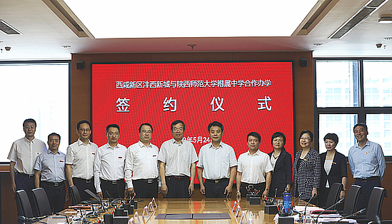 5月24日下午,西咸新区沣西新城与陕西师范大学附属中学合作办学签约仪式在总部经济园9号楼第一会议室举行,陕西师范大学党委常委、副校长党怀兴,陕西师范大学附属中学校长冯军,陕西师范大学附属中学党委书记陈勇刚,刘宇斌、薄磊等领导同志出席,曾志勇同志主持。