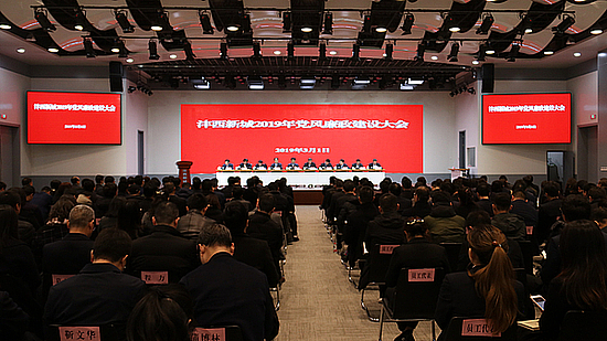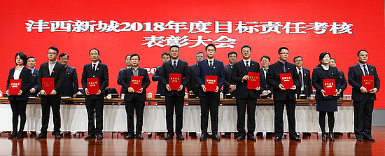 会上宣读了党委、管委会《关于表彰沣西新城2018年度目标责任考核先进集体和先进个人的决定》,为19个优秀单位和专项工作先进单位、10名优秀个人代表进行了大会颁奖,钓台街办、国土房管局、市政项目部、公安分局分别进行表态发言,各分管委领导分别就党风廉政、营商环境、安全生产、扫黑除恶、平安建设、大棚房整治、生态环保及其它分管领域工作进行安排部署,刘宇斌、郑涛、薛峰分别就党风廉政、安全生产、治污减霾工作与各基层党组织、镇街及相关部门签订目标责任书,最后刘宇斌同志发表重要讲话。