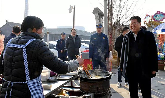 在各景区,张宏伟随机询问当地商户群众,“有没有人引导你们摆摊”,“你对景区服务满意吗?”“景区节目精彩吗?”“咱们茯茶镇热闹的很,我们一天炸油糕就能收入不少”“这关中锣鼓就是美,敲出了关中人的豪迈,敲出了咱泾河人的精气神,美着呢。”