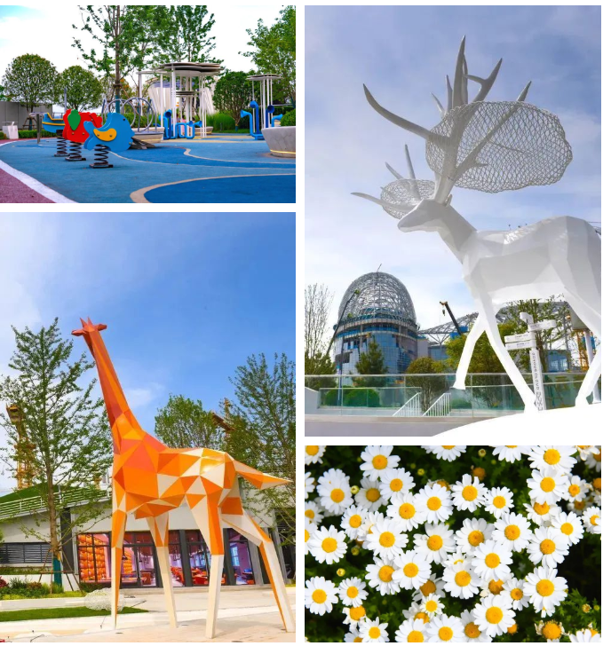 滩区不仅种植了绿色植被保护渭河自然生态,更有机融入秦汉历史元素,打造出灵渠广场、丝路观廊、绿地泡泡、科普中心、鱼跃码头、同德广场、童趣广场等主题各异的休闲游览、科普教育场所,形成了自然野趣+人文休闲的湿地滩区新貌。
