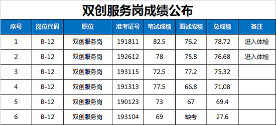 西咸新区管委会公开招聘派遣制员工面试成绩及进入体检人员名单公告